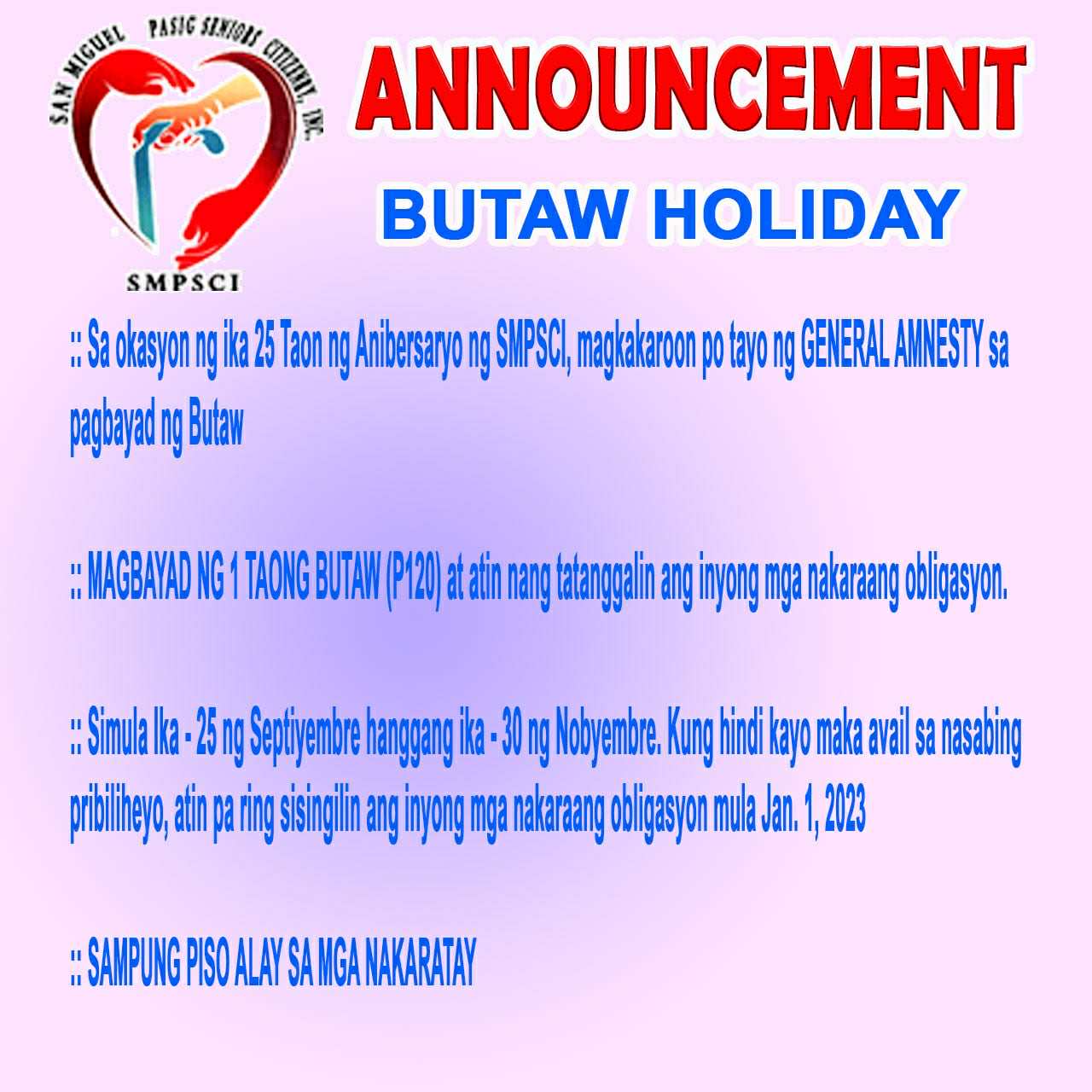SMPSCI aims to be the dominant senior association in Barangay San Miguel that will assist the seniors in maximizing whatever benefits they can derive from all legal sources and in giving them quality life physically, spiritually, emotionally, and socially.